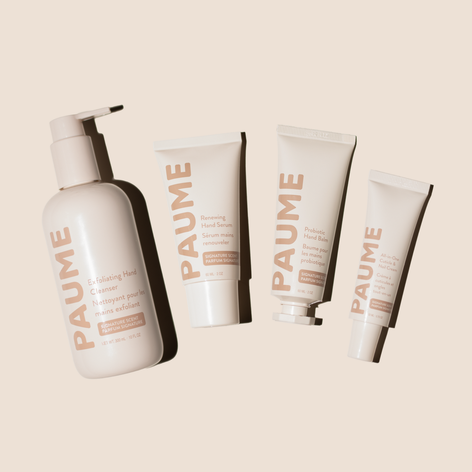 The ultimate skincare system for youthful looking hands. The Exfoliating Hand Cleanser to cleanse, polish and prep the skin, Probiotic Hand Balm for daily hydration and nourishment, the All-in-One Cuticle and Nail Cream for soft cuticles and strong healthy nails, and the Renewing Hand Serum to visibly fade brown spots, reduce fine lines and improve skin tone and texture.