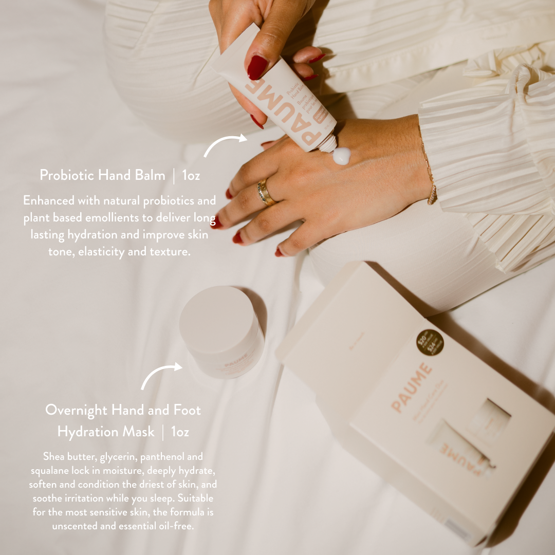 This travel-ready duo features mini sizes of our two best-selling treatments—designed to soften, repair, and deeply hydrate the skin that works hardest. Whether you're on a flight, at your desk, or winding down for the night, this set delivers serious care in perfectly portable sizes.