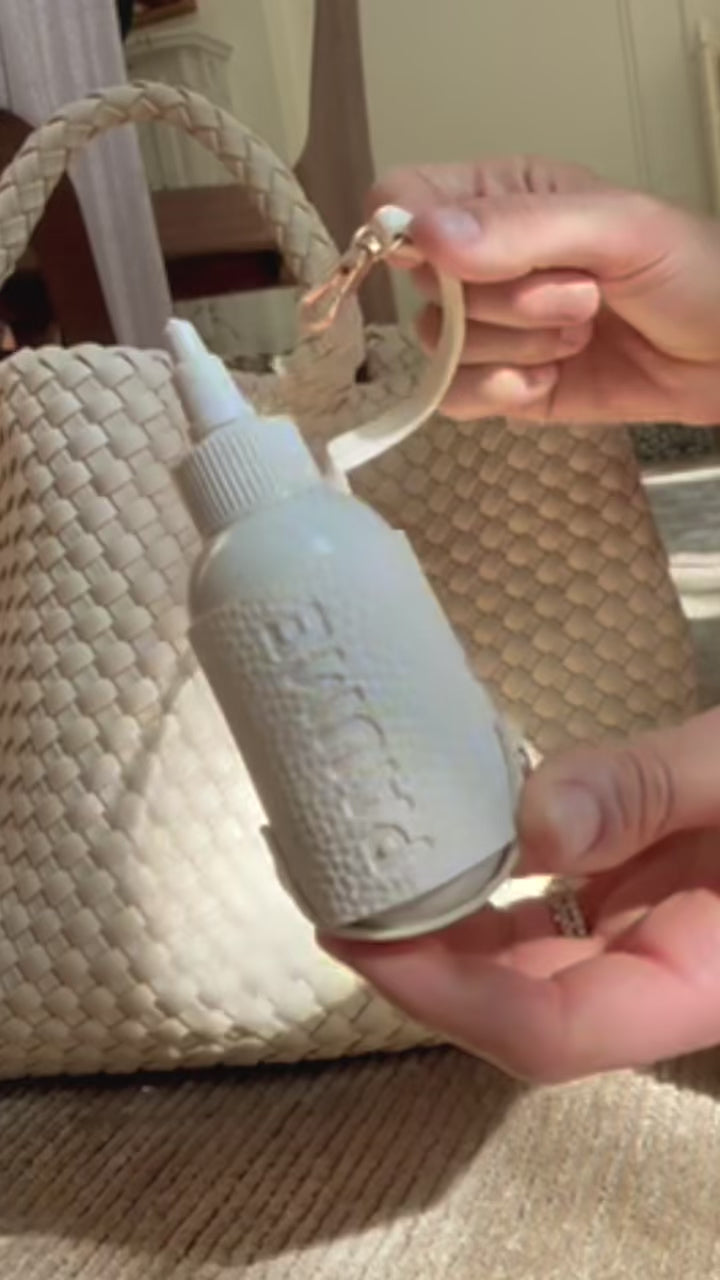 Sanitizing never looked so chic. Made of pebbled vegan leather and matte brass hardware, The Voyager Case holds your 90ml Travel Bottle and conveniently clips on to any bag, backpack, belt, diaper bag or stroller.